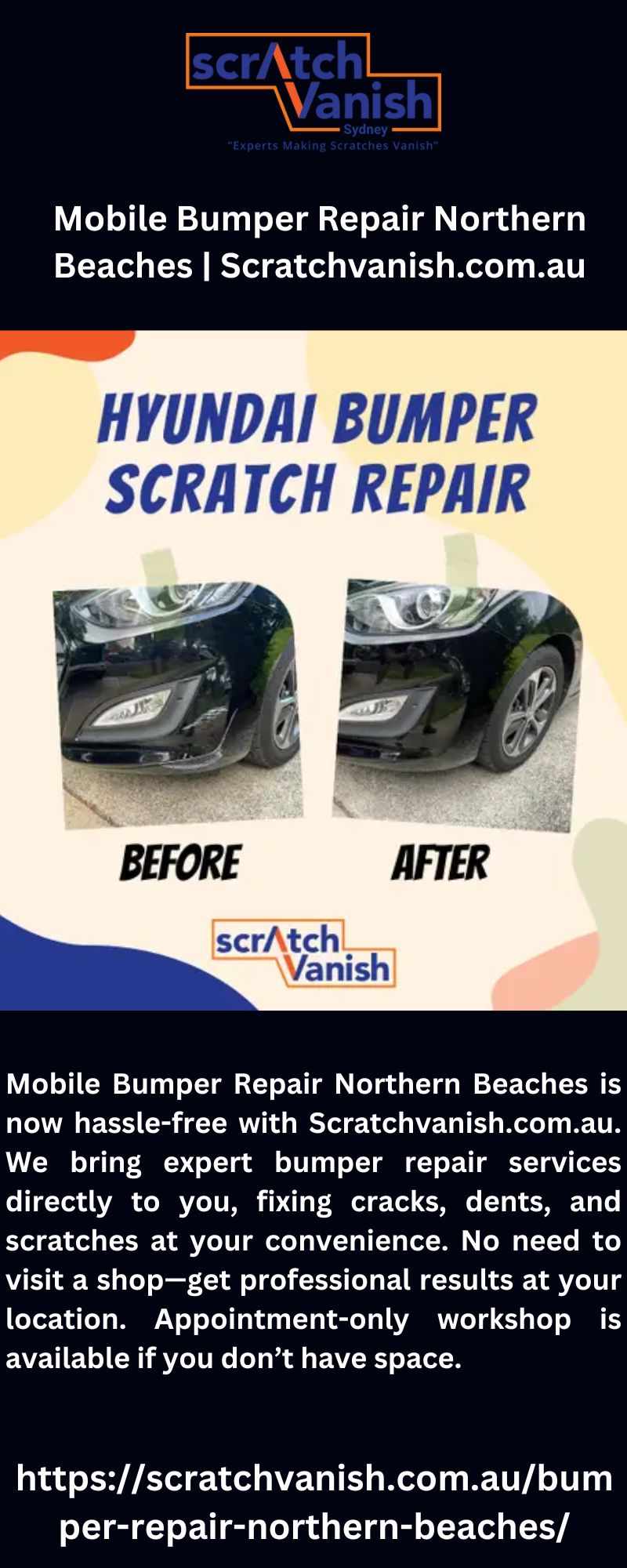 Mobile Bumper Repair Northern Beaches is now hassle-free with Scratchvanish.com.au. We bring expert bumper repair services directly to you, fixing cracks, dents, and scratches at your convenience. No need to visit a shop—get professional results at your location. Appointment-only workshop is available if you don’t have space.